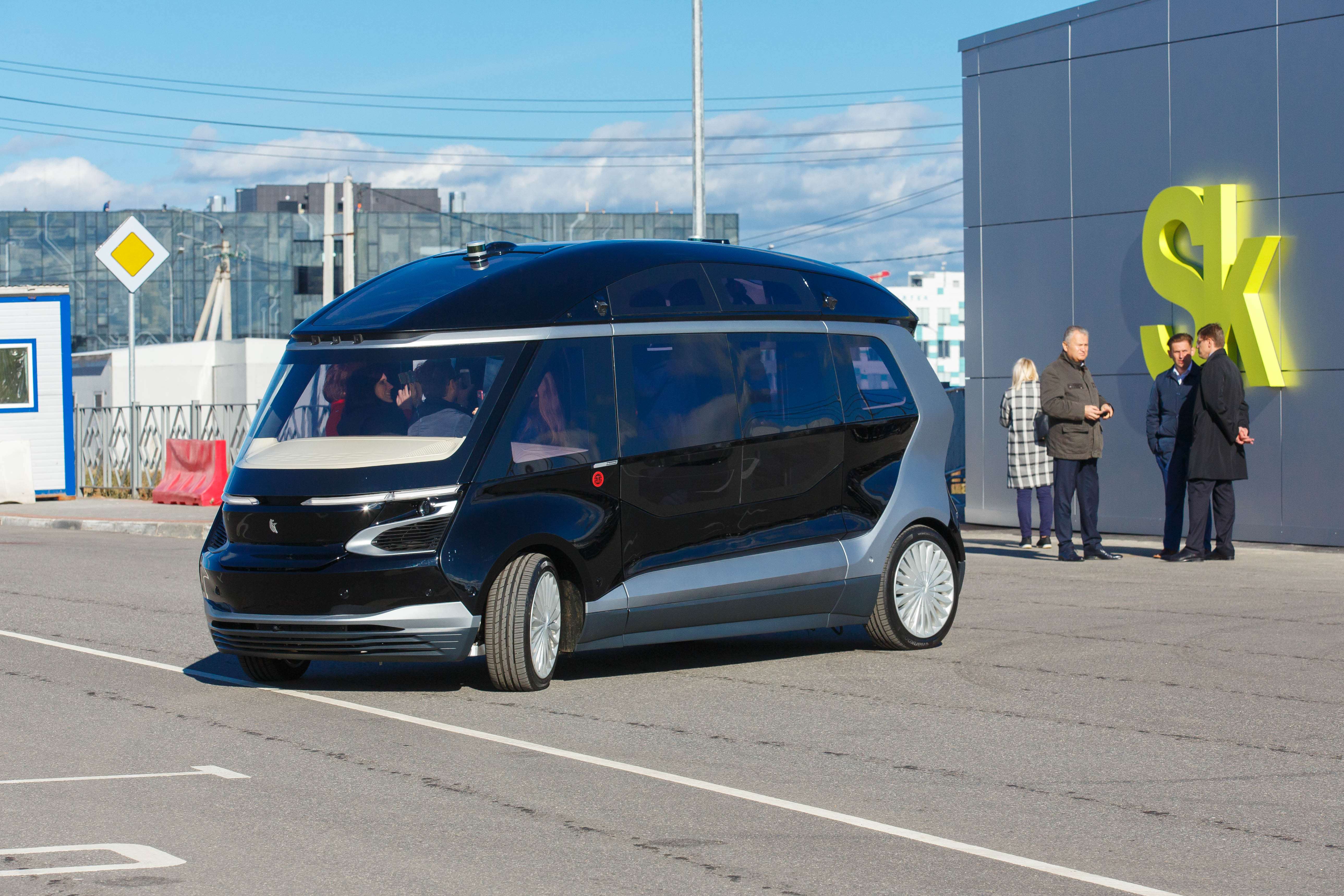 На специальной площадке для испытаний оборудовано круговое движение двух беспилотных электробусов «КАМАЗ» малого класса ШАТЛ категории М2 предназначено для передвижения по дорогам с твёрдым покрытием с использованием данных цифровых карт, систем навигации и органов технического зрения. Автомобили разработаны совместно с «НАМИ». Во время движения электробуса все телеметрические данные, данные параметров движения, видео фиксации высокого качества передаются по сетям пятого поколения в режиме реального времени в командный пункт мониторинга. Сам электробус рассчитан на 12 мест, 6 из которых — для сиденья, а водительского места не предусмотрено.