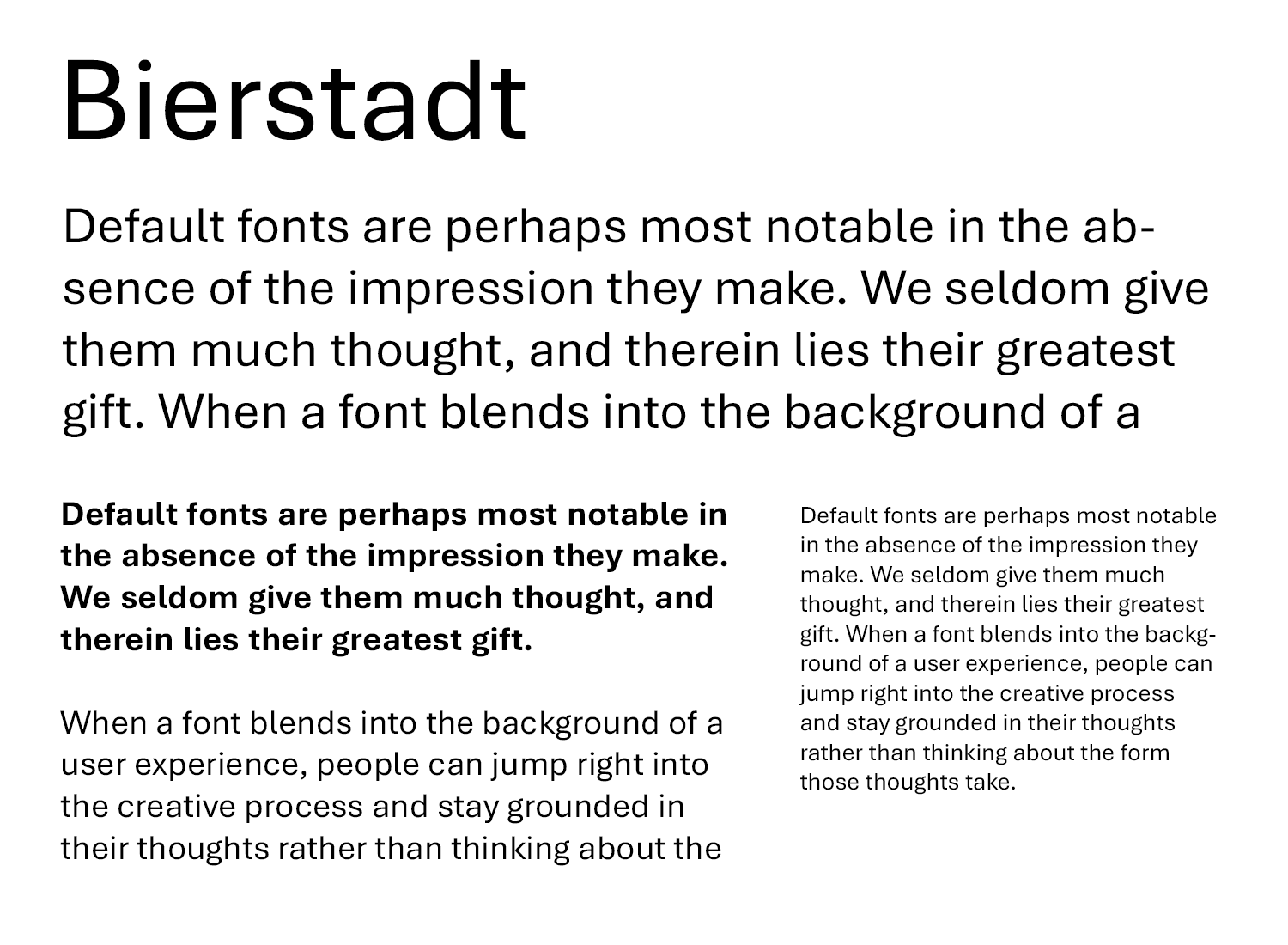 Использовавшиеся ранее по умолчанию шрифты также будут доступны пользователям Microsoft Office. Для удобства Calibri, Arial, Times New Roman будут располагаться в верхней части списка шрифтов. Пользователи также смогут настроить собственный шрифт по умолчанию. Для пользователей, которые привыкли к названию Bierstadt, он сохранится и под таким наименованием.