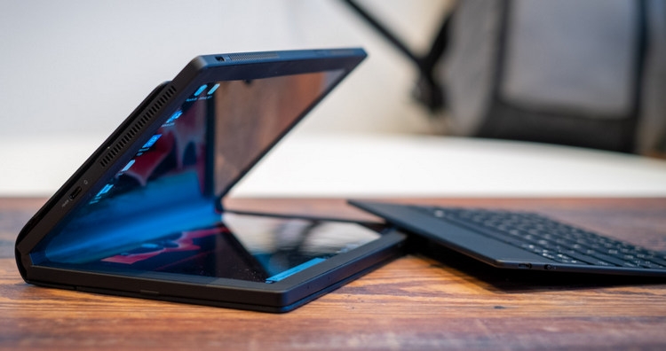 В рамках презентаций на выставке CES 2020 компания Lenovo продемонстрировала свой первый гибкий ноутбук ThinkPad X1 Fold. Девайс не имеет клавиатуры и тачпада. Всю его внутреннюю панель занимает гибкий сенсорный экран. Первые партии нового устройства начнут продаваться в июле 2020 года.