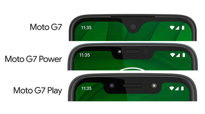 Все смартфоны линейки Moto G7 получили широкоформатные экраны с вырезами в верхней части. При этом форма вырезов для каждой модели отличается друг от друга.