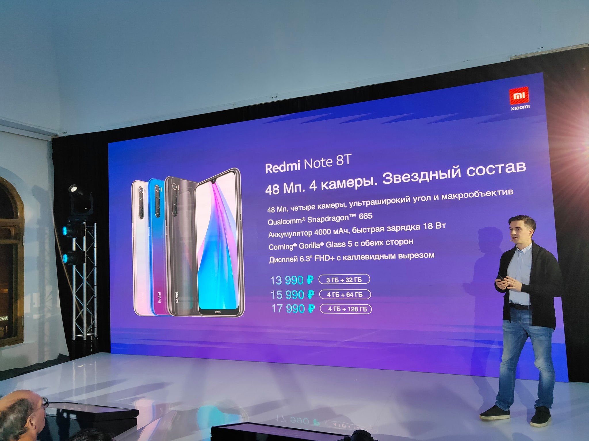 Кроме того, компания представила доступный смартфон Redmi Note 8T с диагональю 6,3 дюйма на базе процессора Snapdragon 665. Смартфон оснащен основной четырехмодульной камерой с разрешением 48 Мпикс, и фронтальной камерой 13 Мпикс.