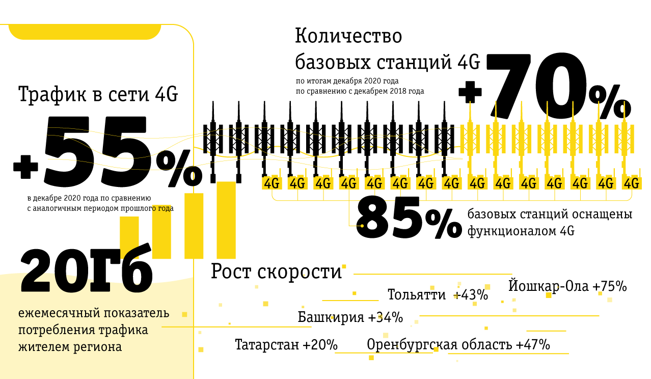 Лидерами по количеству новых базовых станций стали Татарстан, Башкортостан и Марий Эл, Свердловская, Челябинская, Самарская и Саратовская области, Пермский край и Ханты-Мансийский автономный округ.
