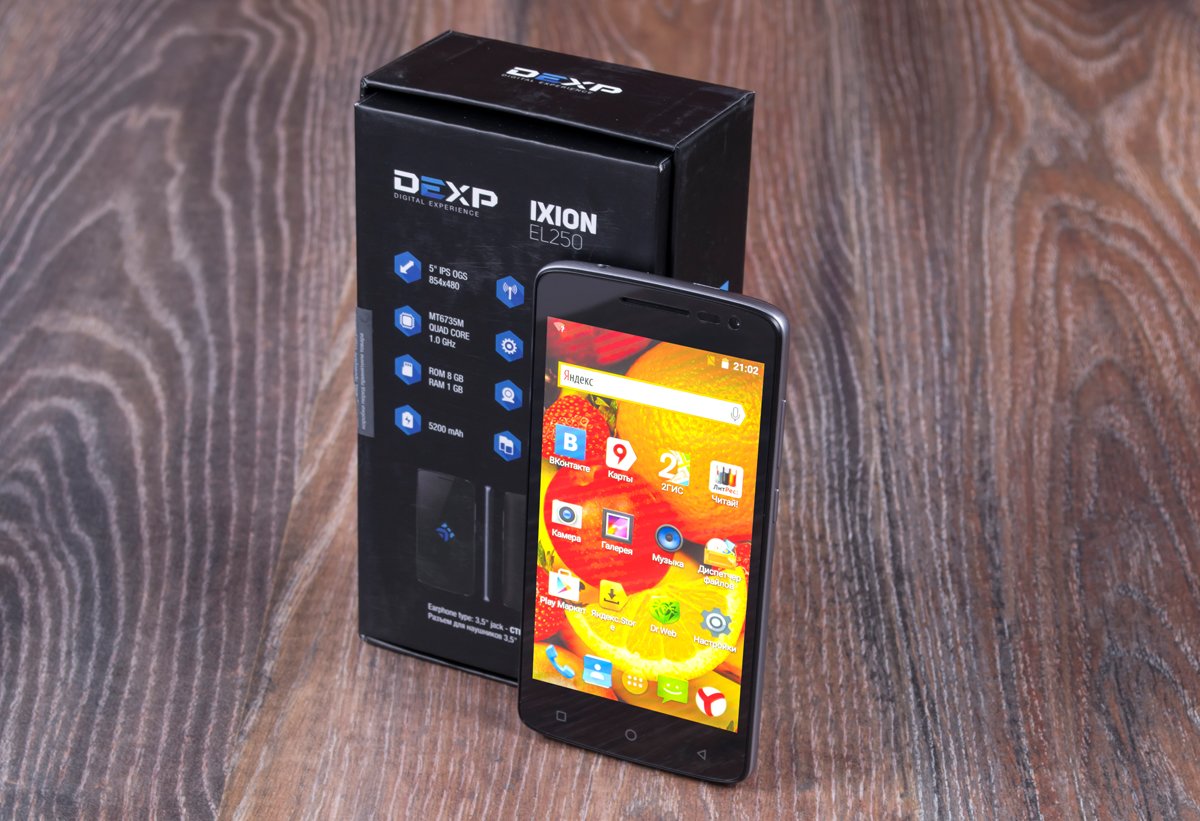 В данном обзоре речь пойдет о смартфоне-долгожителе DEXP Ixion EL250 Amper E ценой в 8 490 рублей. Нет, дело не в том, что этот аппарат уже давно представлен на рынке, он как раз является новинкой. Дело в том, что модель снабжена аккумулятором на 5 200 мАч и работает реально долго. Впрочем, об этом мы поговорим в соответствующем разделе, а сейчас предлагаем ознакомиться с характеристиками устройства.