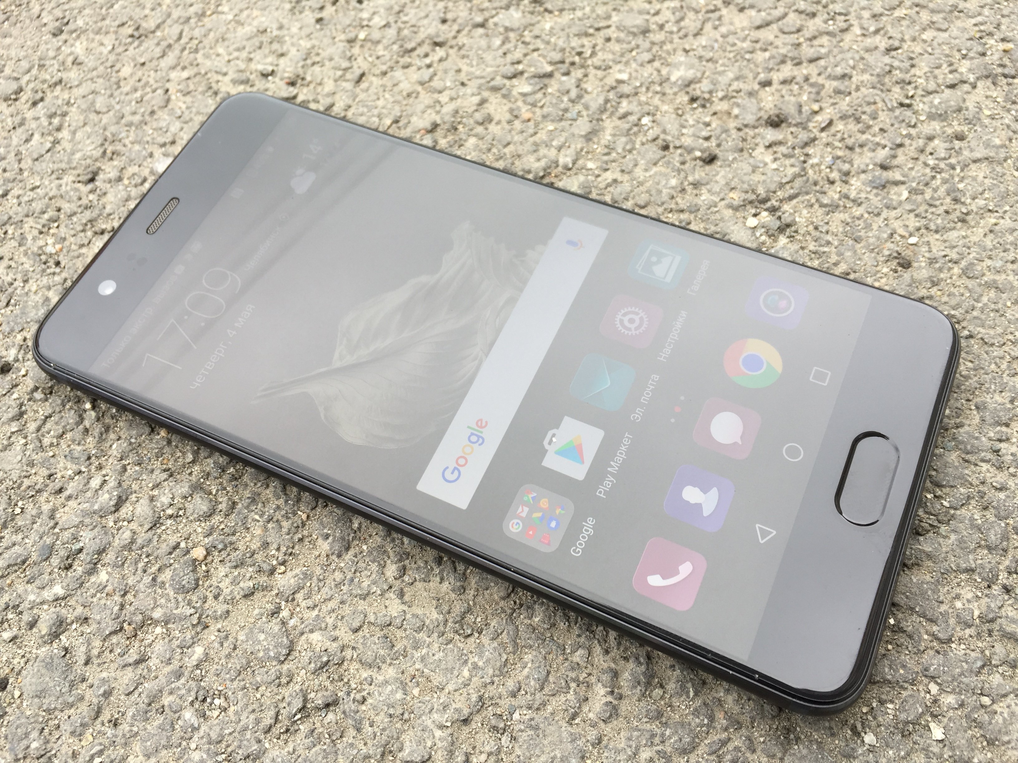 Под экраном разместился сканер отпечатков пальцев. Других элементов здесь нет. Функциональные клавиши интегрированы в экранную оболочку операционной системы. Дактилоскопический сенсор работает достаточно быстро и, что главное, точно. На официальном сайте Huawei говорится о 0,3 секунды на распознавание, и это похоже на правду. Во время тестирования он безошибочно распознавал мои отпечатки и не реагировал на чужаков. Всего можно сохранить в памяти устройства до пяти отпечатков. С помощью сканера отпечатков пальцев можно пользоваться платёжным сервисом Android Pay, запуск которого ожидается в России в течение ближайшего времени.