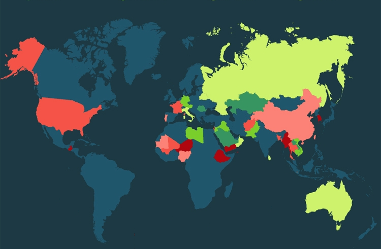 А вот в таких популярных у туристов странах как, например, Таиланд и Франция, наблюдается весьма высокий уровень опасности при подключении к публичным сетям — 43% и 40 соответственно.