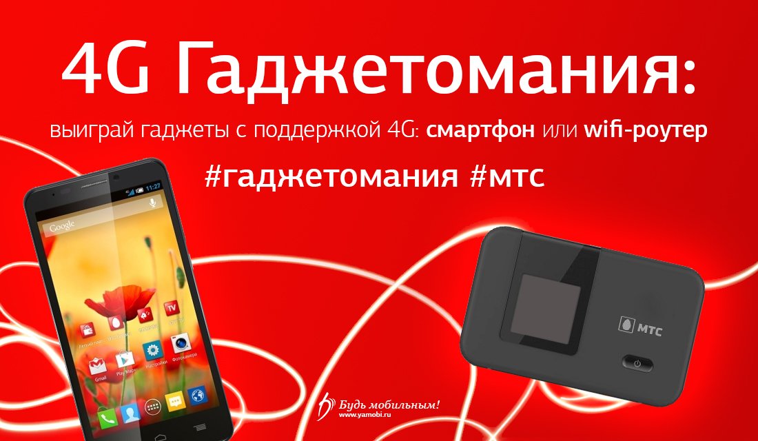 С 20 по 27 апреля 2015 года на нашем проекте проходит конкурс «4G Гаджетомания». В течение недели с понедельника по пятницу мы будем публиковать вопросы, связанные с услугами, сервисами и мобильными устройствами 4G. Читатели нашего ресурса, давшие наибольшее количество правильных ответов, получат призы – 4G-смартфон МТС 978 и 4G WiFi-роутеры с поддержкой LTE. Итоги викторины мы подведём 27 апреля 2015 года.