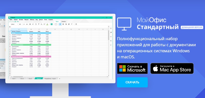 «МойОфис Стандартный. Домашняя версия» - отечественный аналог офисного пакета Microsoft Office. Он используется для работы с электронными документами специально для частных пользователей. С его помощью можно создавать и редактировать тексты и таблицы. Пакет поддерживает популярные зарубежные операционные системы семейств Windows и macOS и не требует подключения к интернету.