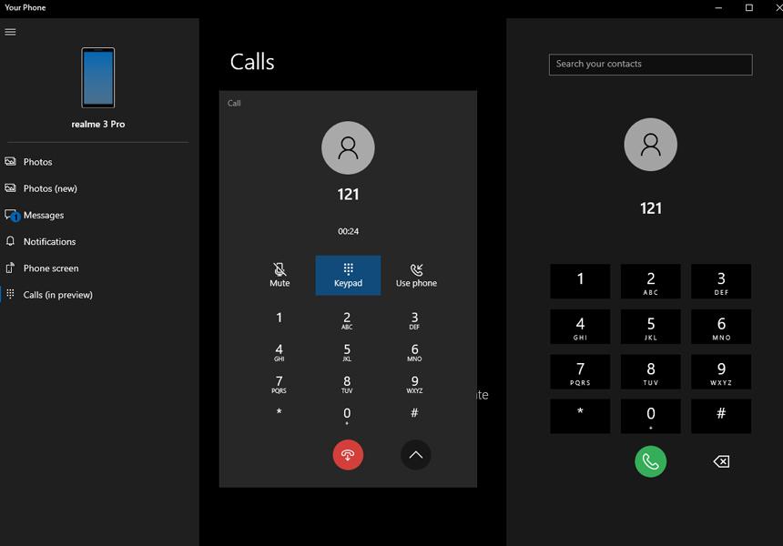 Для использования новой опции в приложении Your Phone «Ваш телефон» необходимо подключиться к смартфону на Android. При этом помимо получения оповещений, возможности ответа через компьютер на сообщения, просмотра фото и данных из памяти устройства появится опция Call - Позвонить. При клике на него откроется панель набора номера и контакты.