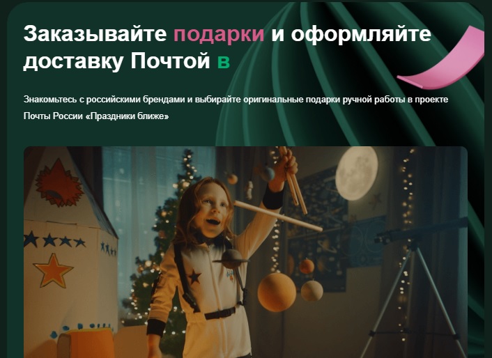 Почта России создала онлайн-площадку «Праздники ближе» с вариантами новогодних подарков от локальных брендов из разных регионов страны. Цель проекта - помочь небольшим независимым производителям и приверженцам осознанного шопинга найти друг друга.