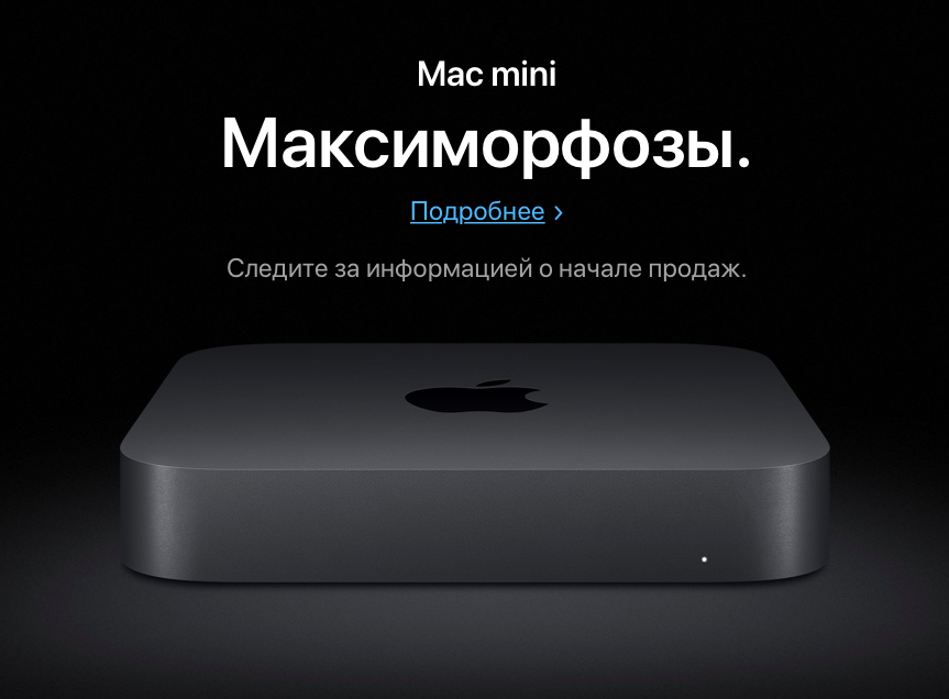 Продажи Mac mini 2018 начнутся 7 ноября 2018 года по цене от $799 без учёта налогов.
