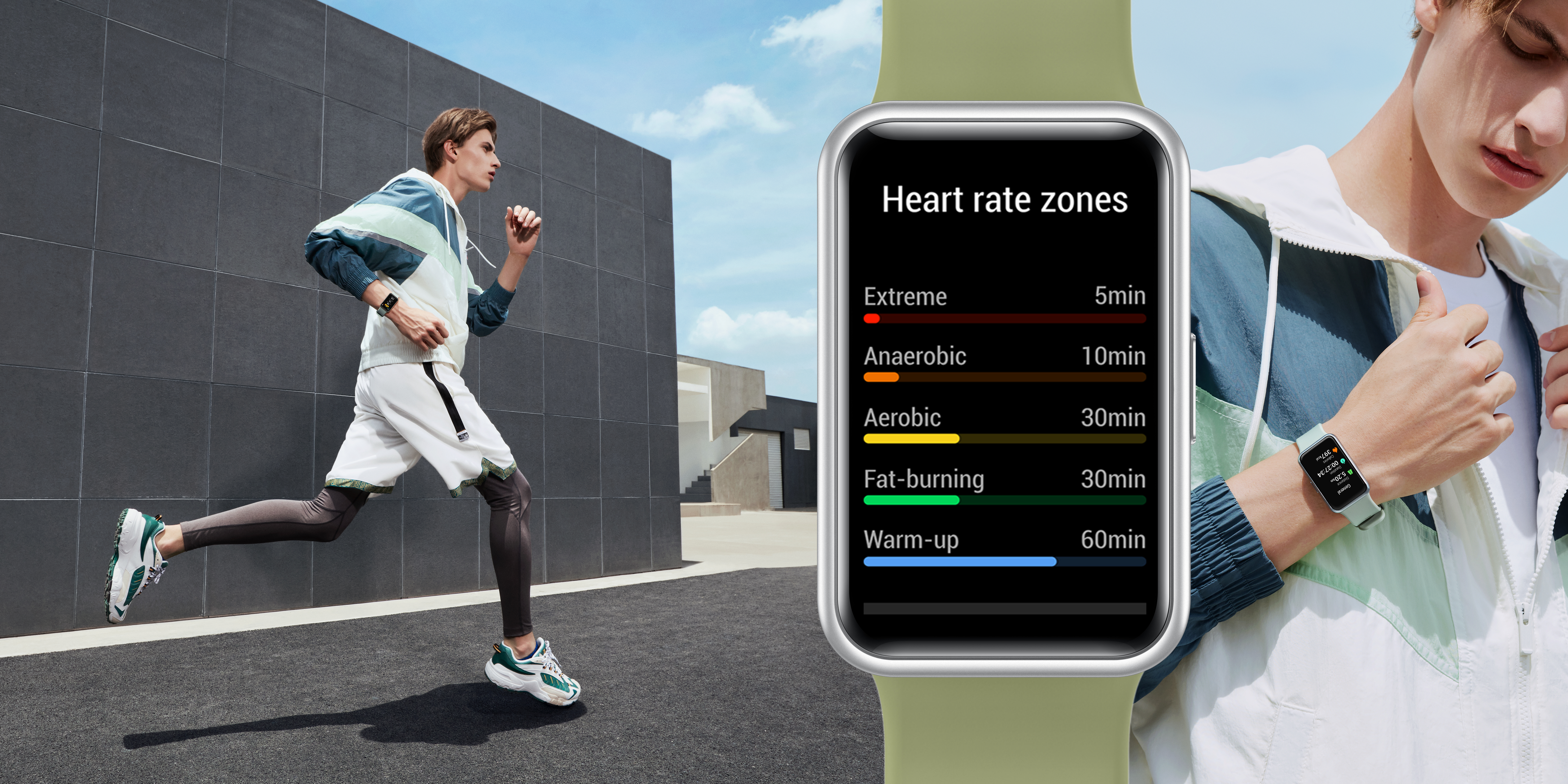 Пользователям фитнес-часов Huawei Watch Fit предлагается 11 режимов быстрых тренировок с анимированными инструкциями, включая бег, ходьбу, езду на велосипеде, плавание и многое другое. Еще 85 режимов, например, фитнес, йога, танцы, игры с мячом, водные, зимние и экстремальные виды спорта, учитывают предпочтения пользователей с любыми спортивными интересами. Встроенная функция отслеживания местоположения по GPS учитывает направление сигнала при ходьбе, беге или поднятии руки, чтобы пользователи могли отследить свой маршрут. Водонепроницаемость 5 ATM защищает часы во время упражнений в воде.