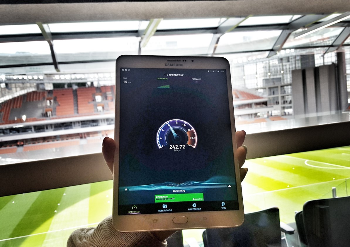 На тестовом матче «Амкар» – «Урал» инженеры оператора провели замеры работы мобильных услуг в реальных условиях: на стадионе присутствовали более 20 тысяч человек, но мобильный интернет «летал» со скоростью 260 Мбит/с.