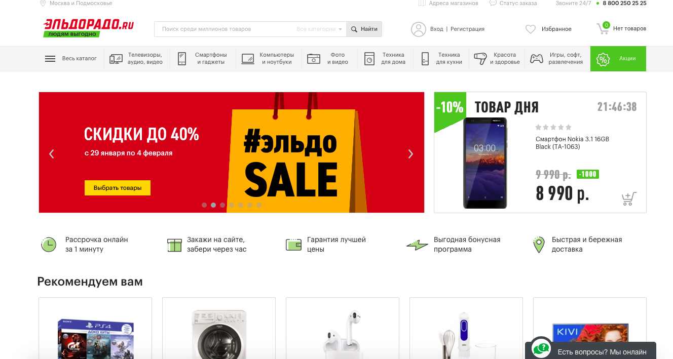 В коммуникации с потребителем «Эльдорадо» особое внимание уделяет персонализации, ввиду чего рекомендуемые покупателю товары были выделены в отдельный блок, а обновленный поиск, работающий на основе машинного обучения, выдает релевантные товары с учетом предпочтений и активности посетителя интернет-магазина. Кроме того, в отдельный блок вынесены популярные товары, которые получили наибольшее количество позитивных отзывов покупателей.