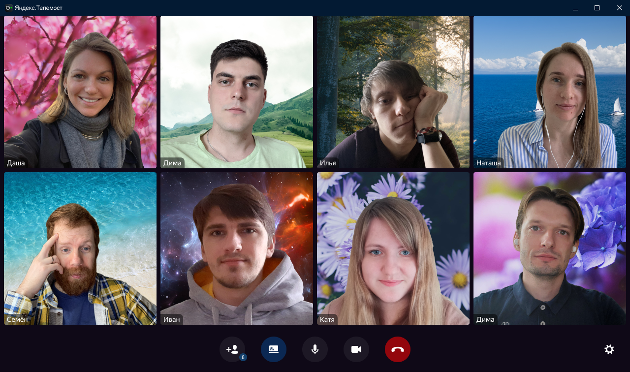 Кроме того, «Яндекс» поменял фон стартового экрана «Телемоста», который изначально был чёрным. Теперь вместо сплошной заливки на него выводятся различные изображения, и это работает как в веб-версии, так и в программах для компьютеров и мобильных устройств.